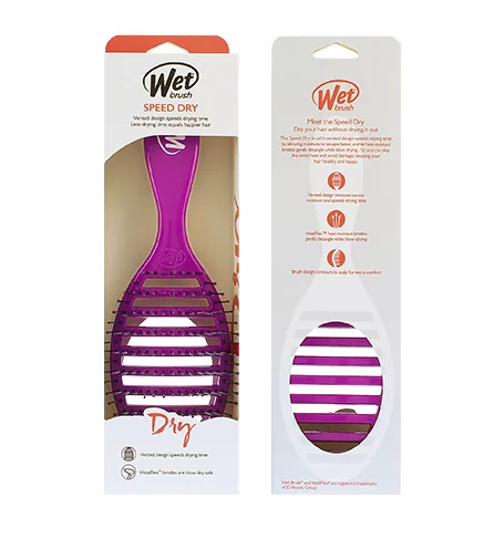 Upgradujte svou stylingovou rutinu a chraňte své vlasy před poškozením s kartáčem Wet Brush® Speed Dry®. Jeho odvětrávaný design umožňuje průchod vzduchu kartáčem, čímž se urychluje doba sušení a snižuje se vystavení vlasů teplu. Štětiny HeatFlex® se při úpravě ohýbají, zabraňují tahání nebo zachycování pramenů a chrání tak vlasy před lámáním a poškozením.