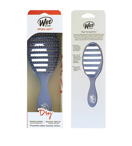 Upgradujte svou stylingovou rutinu a chraňte své vlasy před poškozením s kartáčem Wet Brush® Speed Dry®. Jeho odvětrávaný design umožňuje průchod vzduchu kartáčem, čímž se urychluje doba sušení a snižuje se vystavení vlasů teplu. Štětiny HeatFlex® se při úpravě ohýbají, zabraňují tahání nebo zachycování pramenů a chrání tak vlasy před lámáním a poškozením.