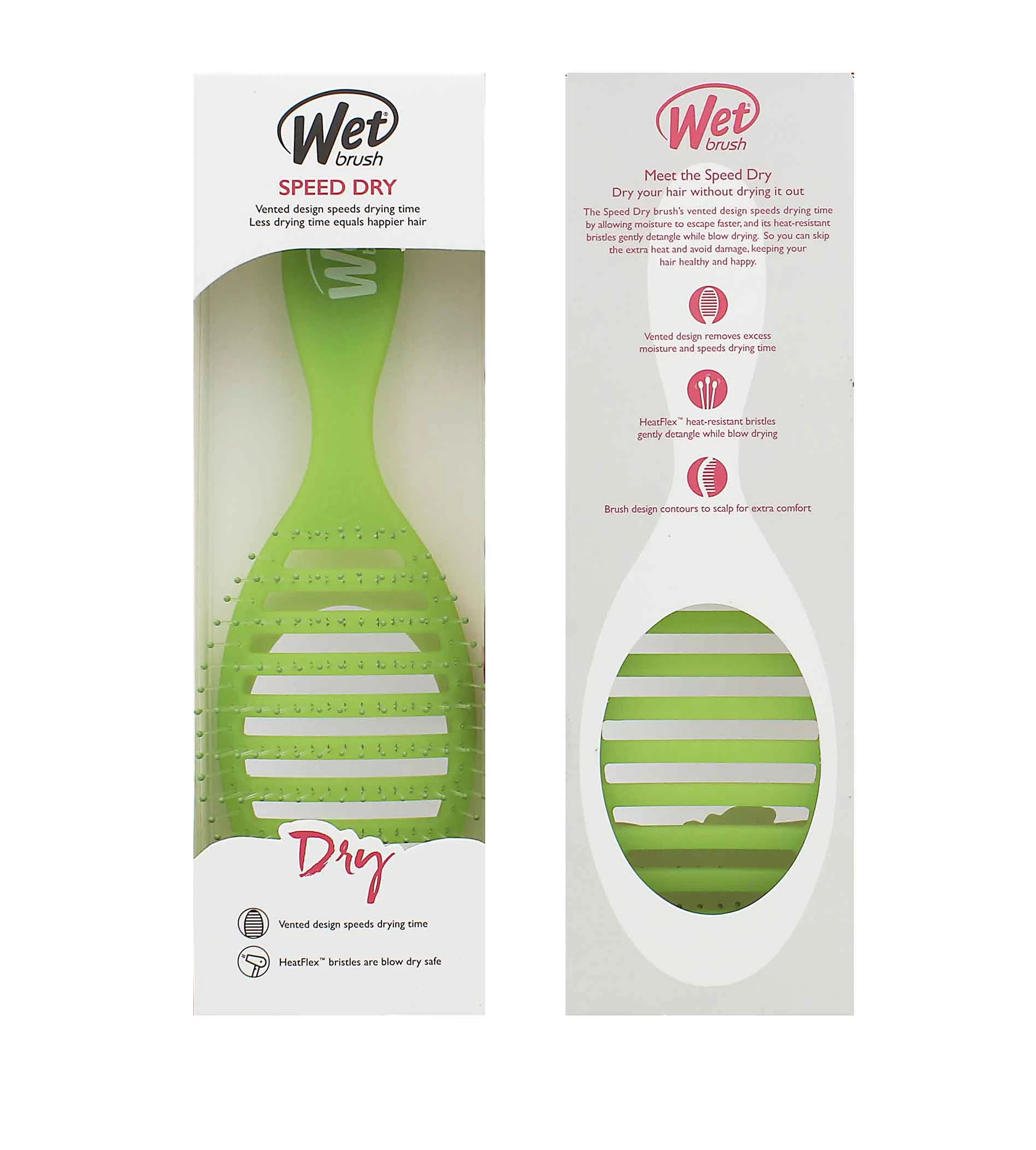 Wet Brush Summer Quenchers Speed Dry je stylový a funkční kartáč z limitované letní edice Lime & Rita, který usnadňuje rozčesávání vlasů a zároveň urychluje jejich schnutí. Díky otevřenému designu s ventilačními otvory umožňuje rychlý průchod vzduchu při fénování, čímž zkracuje dobu vysoušení a snižuje tepelnou zátěž vlasů. Kartáč je vybaven ultra jemnými, flexibilními štětinami IntelliFlex®, které minimalizují lámání a tahání vlasů při rozčesávání. Je ideální pro každodenní použití na mokré i suché vlasy.